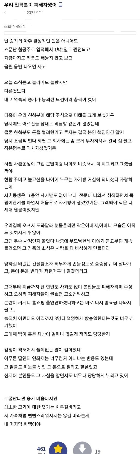 나도 이승기 머글팬인데 견미리 딸이랑 사귀는거 보고 팍식.. 내가 응원했던 이승기 이미지가 아님