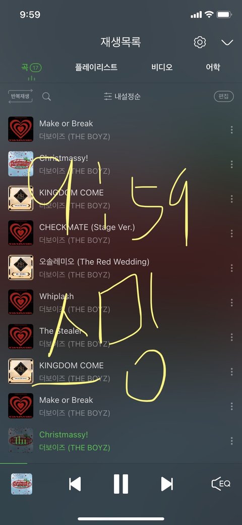 우리학교 점심시간 청소시간에 노래 트는데 권력남용 좀 했다 원래 신청곡 받아서 트는데 오늘 방송부 애들한테 양해 좀 구하고 킹덤컴 계속 틀고옴..ㅎ 방송부 애들도 같이 스밍 돌려주고 복도에서 누구 노래냐고 얘기하는거 듣고 모르는 애들인데 잽싸게 가서 더보이즈 노래라고 제목까지 알려주고 옴 나 잇프피인데 큰용기 냈다