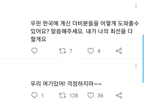 번역기 돌린 것 보소 쏘스윗.. 우리 여기있어 걱정하지마~~가 진짜 개울컥함