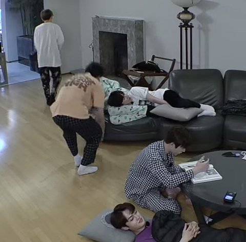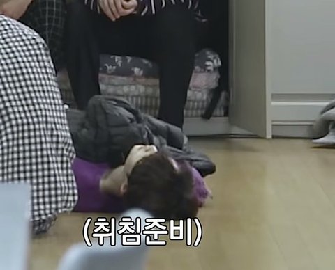 처음에 도영이가 맨바닥에서 자다가