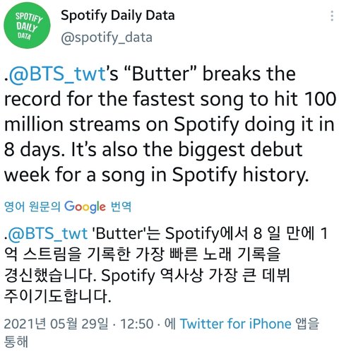 8일만에 1억 스트림이래!!!ㅊㅋㅊㅋ