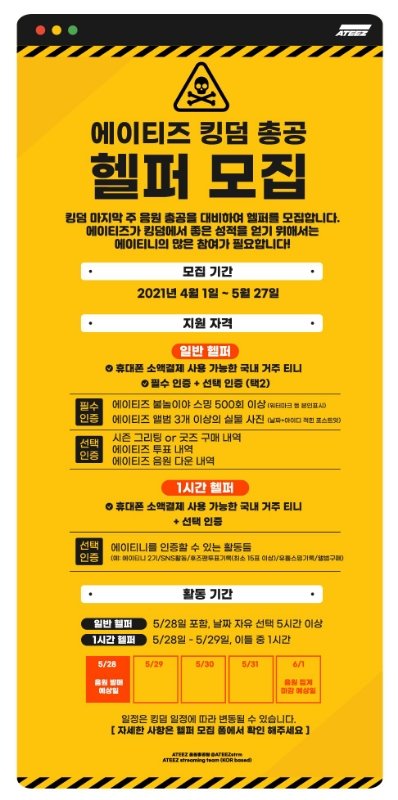 킹덤에서 음원점수 확보를 목표로 하는 음원 총공을 위한 헬퍼 확보가 절실한 상황입니다.