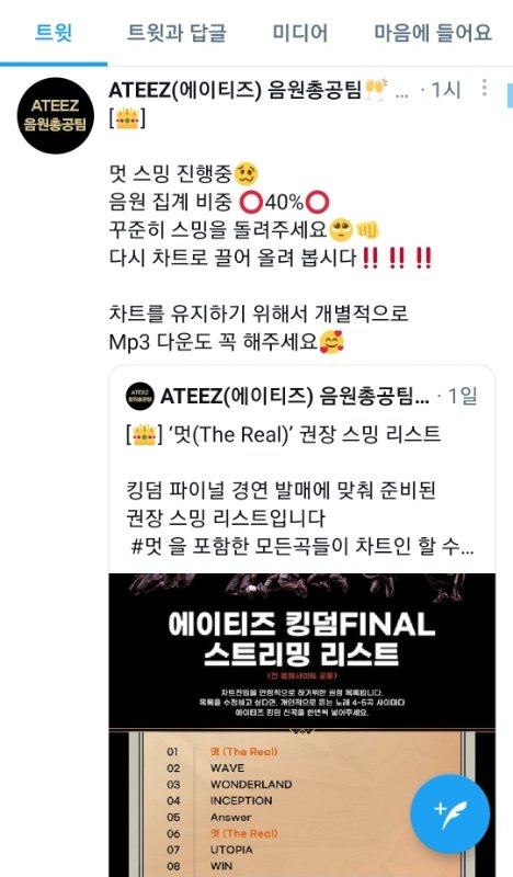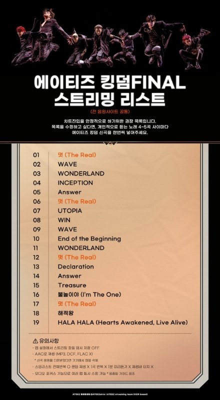 에이티즈의 킹덤 순위를 위한 음원점수 확보에 힘을 보태주세요!!