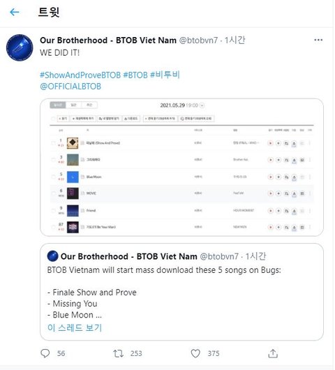 어제 벅스에서 비투비 집안싸움 이거인듯ㅋㅋㅋ지금 해외멜디들 국내 음악 스트리밍 스밍 중인듯~ㅠㅠ진짜 열일해주고 울 해외 멜디를 우리도 넘 잘하고 있어~~ㅠㅠ