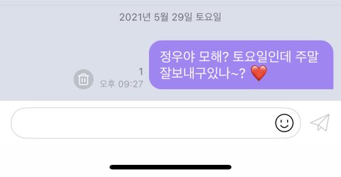 젱우한테 버블 보내고 옴 ㅎㅎㅎㅎㅎ 울 갓기 보고싶다 근데 뭔가 내일올거 같은 느낌