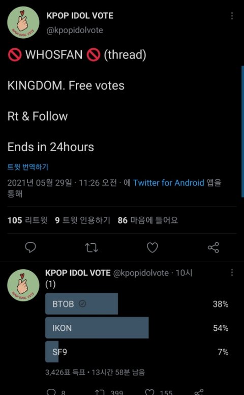 뭔진 몰라도 이긴 사람 투표해준다는거 같음 다 빨리 비투비 하고와 https://twitter.com/kpopidolvote/status/1398465727070228482?s=19