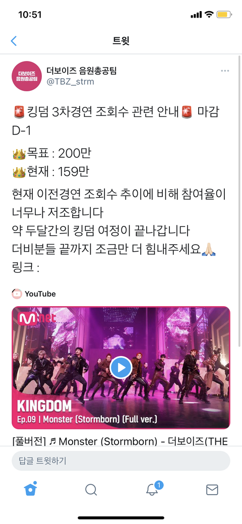 약 두달간의 킹덤 여정이 끝나갑니다 좀만 더 힘내달라는거 진짜 조카 눈물날라함..ㅜㅜㅜㅜㅠㅜㅜㅜ 내 인생 덕질중에서 지금이 젤 힘들어서 그런가 진짜 저 말 보니까 눈물날거 같음ㅋㅋㅋㅋㅋㅋㅋㅋㅋㅋㅋㅋㅋㅋㅋㅋㅋㅋㅋ이제까지 여러가지 힘들었던 기억들이랑 더보이즈가 보여준 멋진무대들 문제 생기면 더비들끼리 뭉쳐서 같이 헤쳐나갔을때도 기억나고 그리고 누구보다 힘들었을 우리 더보이즈 생각도 나고 암튼 막 여러가지가 머릿속에 스쳐지나가면서 생각이 많아지네 다들 좀만 더 고생하자 곧 끝나.. 유튭 스밍 빡시게 돌려야 될 거 같아 후추팬도 그렇고 마지막까지 최선을 다하자 애들 위해서!! 애들 생각하면서 다들 좀만 더 버티자 빡시게 가보자고 짱더비들