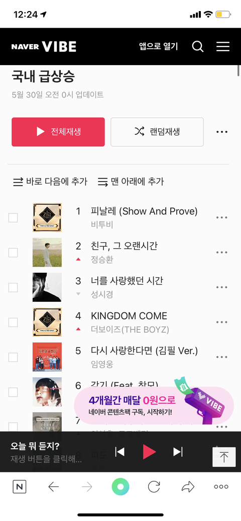 아까 바이브 글 쓴 애인데 방금 보니까 우리 4위인데?? 이 차트가 아닌 거야?