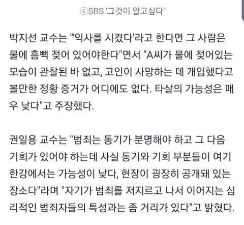 근데 그알에서는 타살의 가능성이 거의 없다고 함..