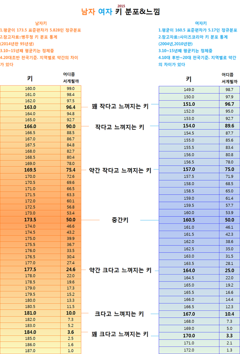 여자 B컵은 남자 키 172~173CM.