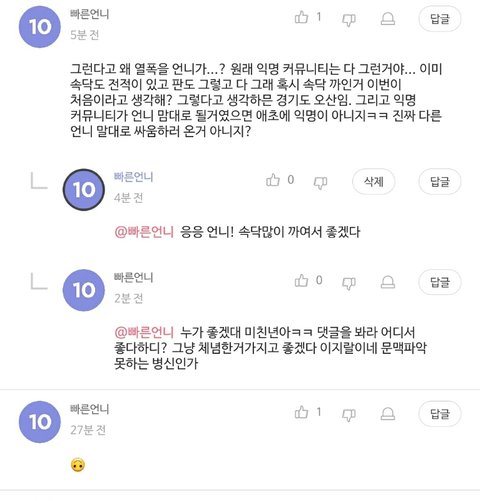 얘네 ㅅㅂ 진짜 ㅋㄱㅋㄱㅋㄱㅋㄱㄱㅋㄱㅋㄱㅋㅋ 댓글보면 장원영한테 어떤생각가지고 있는지 보여서 걍 개웃김 일부러 개초딩처럼 글쓰고 답글쓰니까 우가우가 흥분한거 보여서 웃겨 토나올거같음