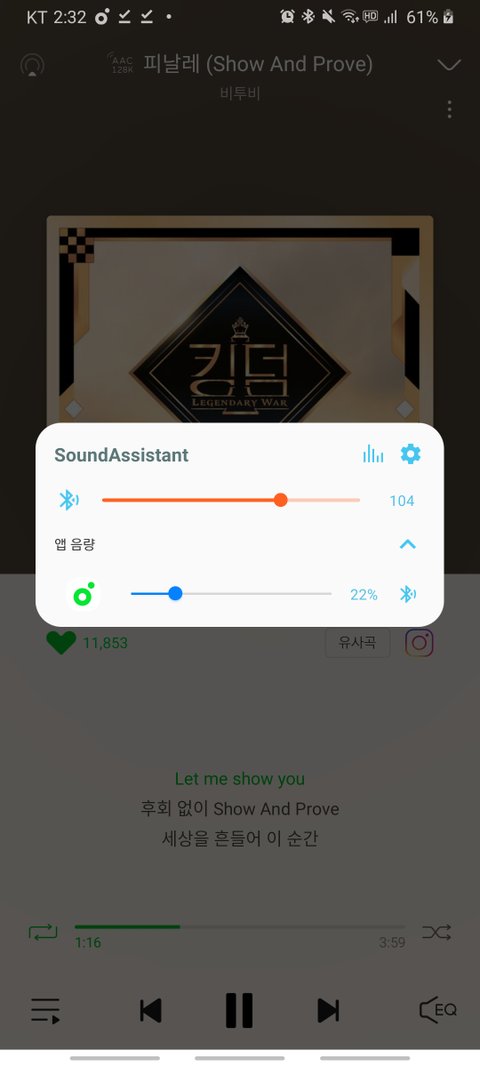내가 이 앱을 쓰고있는데 스밍할때 음향 50%이상으로 해야하잖아.. 기본 음향 50%인거야? 아니면 멜론음향50%인거야???