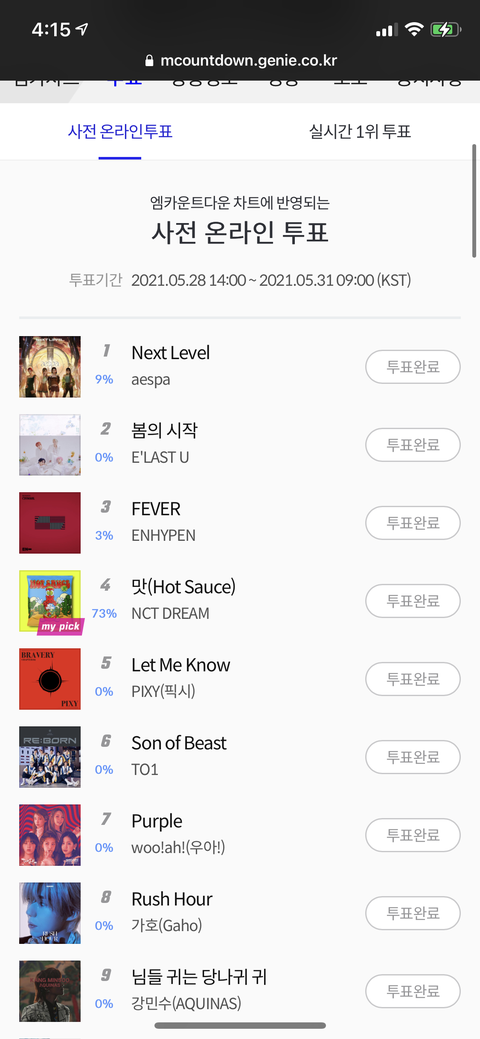 https://mcountdown.genie.co.kr/ 여기서 하면됨 중요해!!!