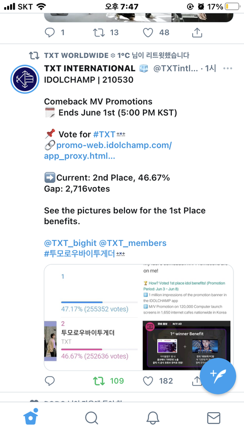 1등하면 뮤비 프모 돌려주나바 우리 차이 별로 안 나는데 얼릉 하고 오자 아챔 앱에서 하는 듯