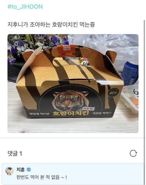 방송봤을 땐 누구보다 호랑이치킨에 빠진걸로 보였는뎈ㅋㅋㅋㅋㅋㅋㅋㅋㅋㅋㅋㅋㅋ
