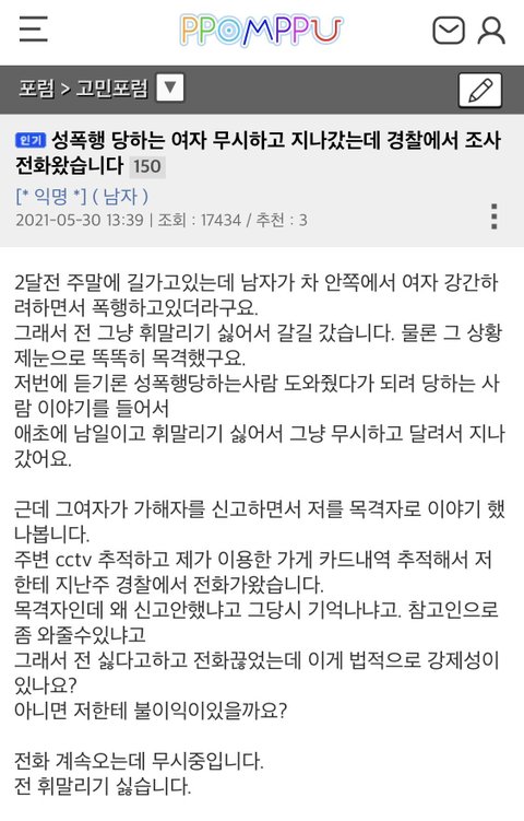 이야 여자들 무서워하라고 글 올리는 의도 ㅈㄴ 투명하다ㅋㅋ 뭐 나서서 말리는걸 못하는건 ㅇㅈ. 근데 신고도 안하고 가?ㅋㅋㅋ 되려 폭행범으로 몰리니 뭐니 하는건 직접 나서서 몸으로 막았을 때 얘기고. 신고는 위험부담 없는데 신고도 안하겠다는건 그냥 ㅈㄴ 인성쓰레기인거지 뭘 여자들 탓으로 포장하고있냐