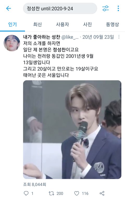 성찬, 쇼타로가 9월 23일자 NCT V라이브에 출연해 직접 자기소개를 했습니다.