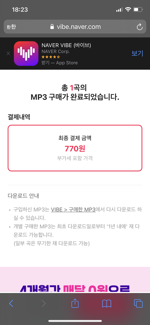 770원 네이버페이 있으면 진심 1분 안에 ㅆㄱㄴ!! 바이브도 다운하고 오자