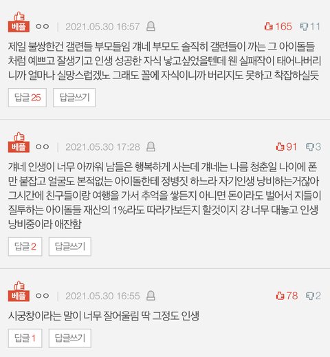 근데 니네엄마도 인생 성공한 이채연같은 딸을 낳고싶어하셨을걸 너같은거 낳을바엔