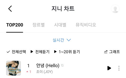 조이 12시 1시 차트 지니 1위다