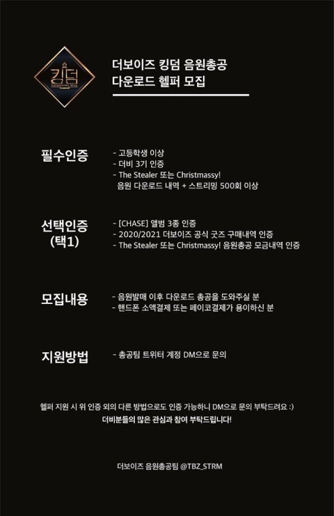 1-2시간이라도 좋으니까 여유있는 더비들 지원 많이 부탁해! 우리 지금 벅스 3등인거 알지? 다시 올라가자! 그리고 인증은 이 사진대로 아니고 지금 급하게 구하시는거라 스밍 인증 횟수 이런거 보여드려도 우선 받아주실거같아. 더비들 화력 모으자 화이팅!