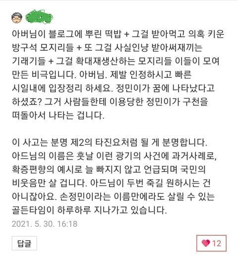 에휴 아버님이 인정못하고 무고한 사람들을 살인범으로 몰아세우는 동안 결국 고인이 고인으로써 존중받을 수 있는 골든타임이 지나버렸네