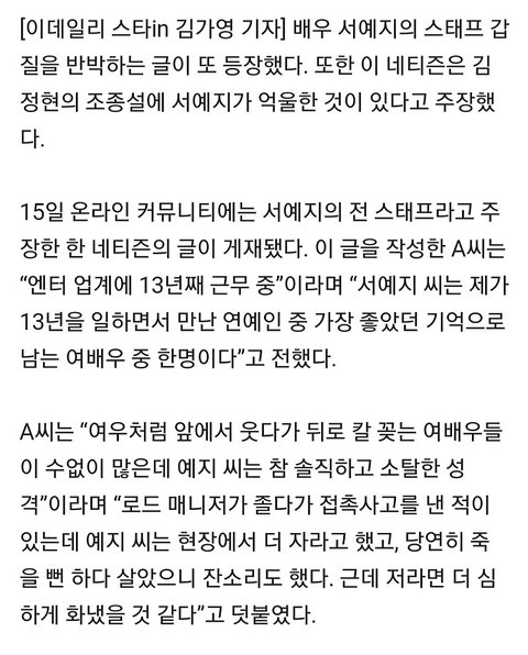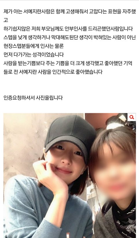 오히려 서예지 응호해주는 스태프들이 훨 많음