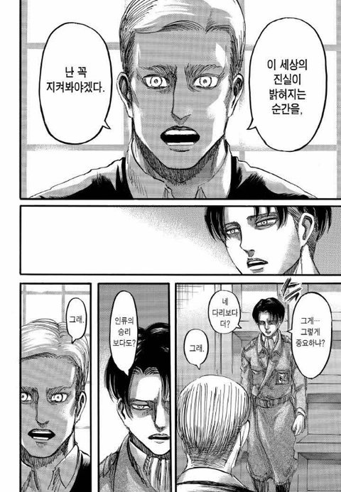 인터스텔라 보다가 리바이 상황이랑 겹치는 부분이 있더라고.. 리바이는 엘빈을 선택하지 않은 걸 후회하지 않는 거고 만약 아예 월마리아에 데려가냐 안 가냐를 다시 선택할 수 있다면 이번에는 엘빈의 판단 말고 자신의 판단을 고집할 수도 있을 것 같음.