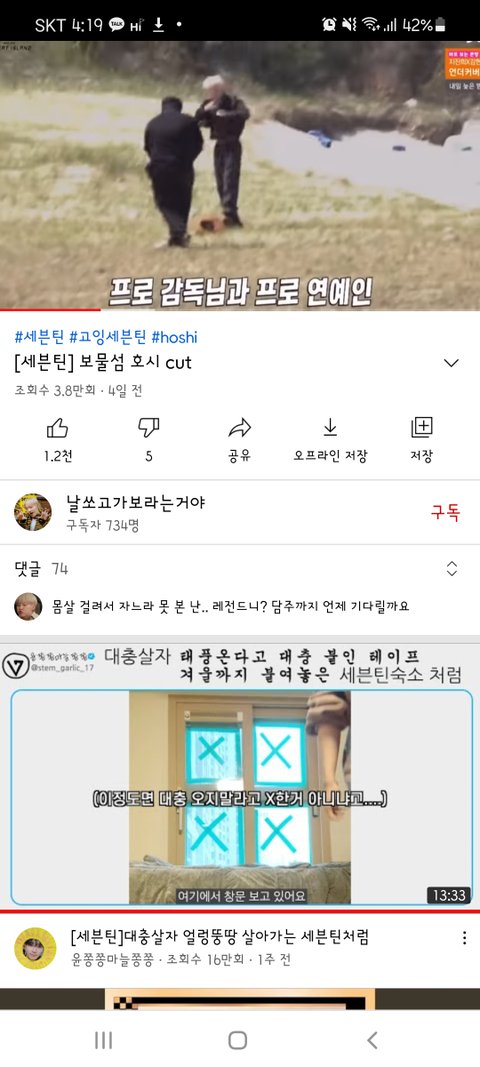 아 그리구 이번에 유툽스밍하면서 보니까? 보물섬? 무인도 갔던거 같은데 고잉세븐틴보려니 이번에 간게 아닌거 같아서 찾질 못하겠는데 미안한데 가르쳐줄 수 있어요? (문제되면 삭제할께요~)