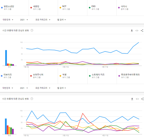 2021년 상반기 보이그룹 검색량 TOP10