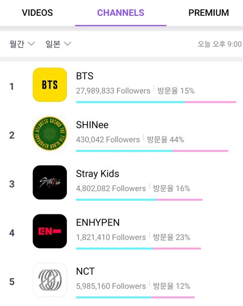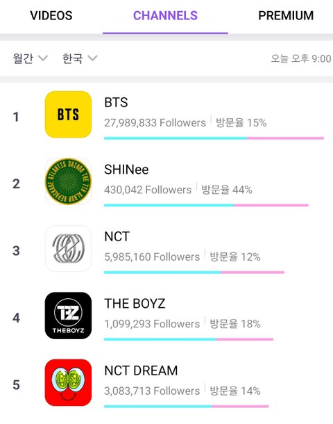 5월 월간 한국,일본 브이앱 인기채널 TOP10