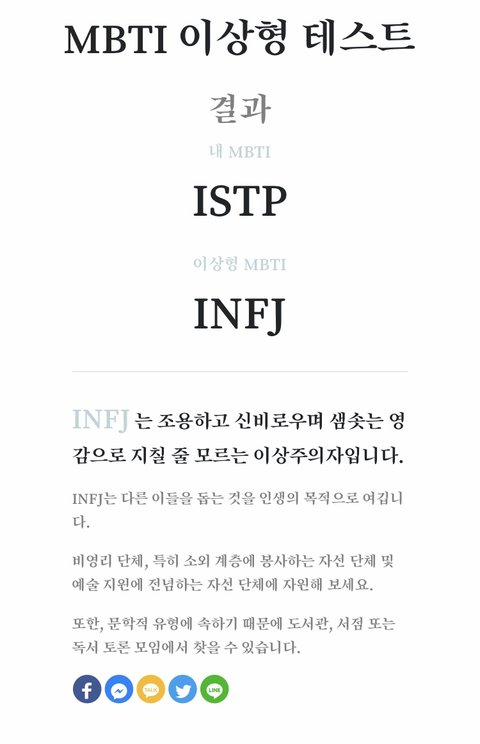 진짜 인프제 저럼??? 막 봉사하기 위해 태어난거같애....????? 난 완전 반대여서 ㅠㅠ 그와중에 그래도 지송이 엠비티아이가 이상형으로 나와서 신남 ㅎㅎ