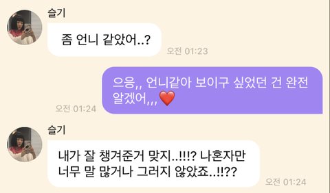 강슬기 99 김예림이랑은 걍 짱친에 야야거리면서 00-02 에스파는 애기들이라고 쩔쩔매는거 너무 웃겨ㅋㅋㅋㅋㅋㅋㅋㅋ 서로 넘 어색하지만 지켜보기엔 귀여운,,, 걱정쟁이 강술기ㅠ