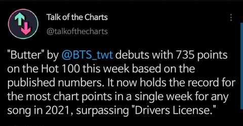 올해 2021년 발매된 곡들 중, 일주일동안 가장 높은 점수(735점) 핫백 1위 데뷔한 곡이래..보통 300점~400점 넘으면 1위함