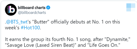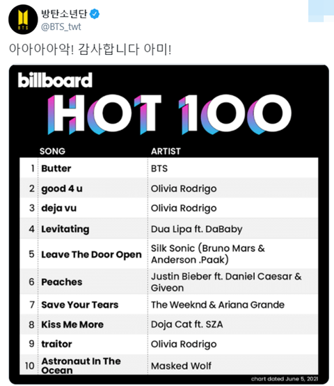 방탄소년단 Butter HOT 100 1위 축하해 ♥ 보라해 ♥