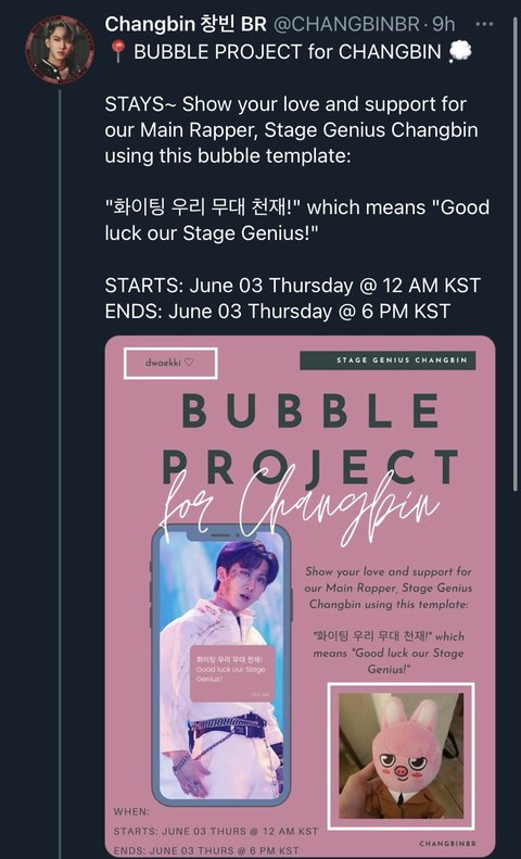 창빈: "Good luck our Stage Genius!" 아니면 "화이팅 우리 무대 천재!"