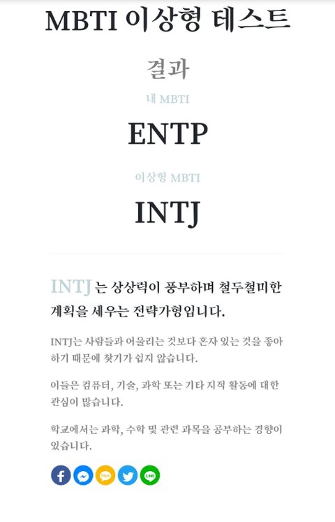 너네 엠비티아이 이상형테스트 뭐나옴?