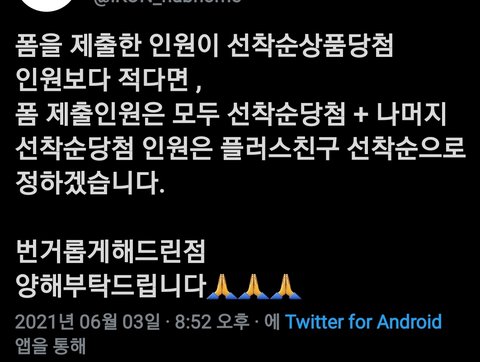 소중한 한표 보내주셨는데 폼과 카톡 모두 수작업으로 정리하여 공정히 선별하도록 하겠습니다. 잘못된 방식으로 무효가 되는 경우도 많으니 늦더라도 꼭 정확한 방식으로 참여해주세요! 다시 한번 죄송합니다.