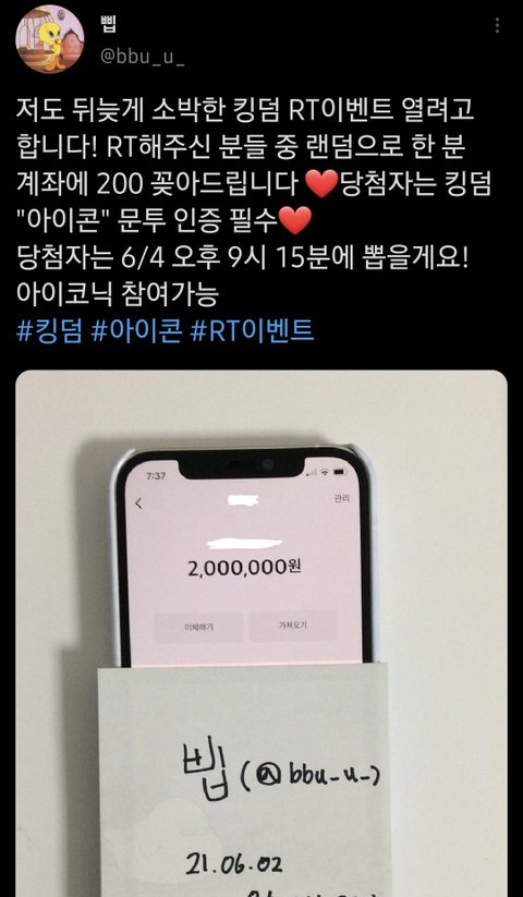 6월 3일 저녁 7시 50분 이후로 #0011 iKON 뽑으시고 200만원 받아가세요!!!