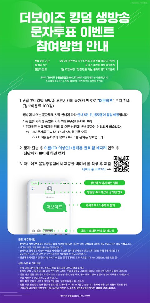 그럼 다들 내일 꼭 킹덤 문자투표 ❤️더보이즈❤️ 한표 행사하고 상품 많이 받아가~~!!!