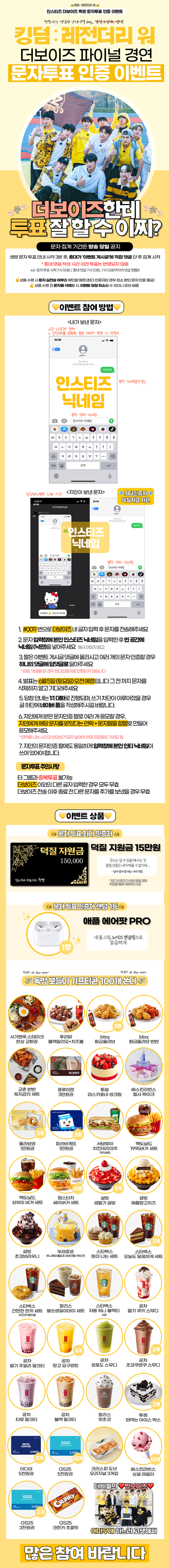인스티즈 더비들이 뿌리는 기프티콘도 엄청 많으니깐!!! ❤️더보이즈❤️ 투표하고 여러군데 참여해서 꼭 상품 받아가