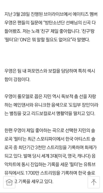 팀 내에서 섹시퍼포담당인데 지민선배님 직캠 보면서 많이 배운대요..♡