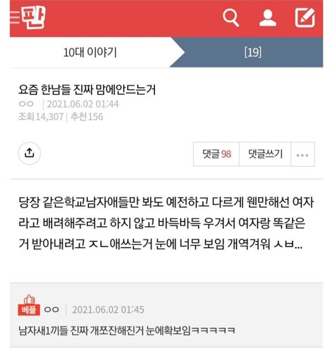 근데 이미지는 지들이 만드는거아닌가? 저딴식으로 행동하는 애들인데 누가 회사에서 뽑고싶겠냐? 해줘해줘 밖에안하는데 오히려 회사는 당신을 보고 뽑아야하는 권리가있는데 안뽑는다고 징징대는건 진짜 역대급이긴해 안되면 더 노력해서 남자들 위에 설 생각을 해야지 니가 맘에안들어서 안뽑는건데 안뽑는다고 징징댐ㅋㅋ 리얼 유일무이 한녀종특인듯 그건 차별당할만해 니들말마따나 회사에서 여자 , 남자 구분해서 뽑는다면 그럴 이유를 알아야지 ㅋㅋ 저딴식으로 행동하는데 누가 뽑아줌