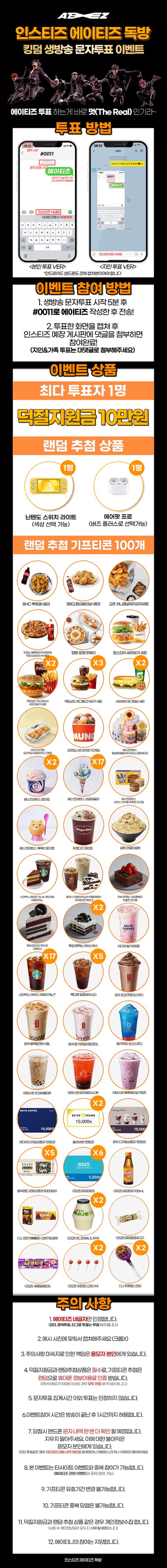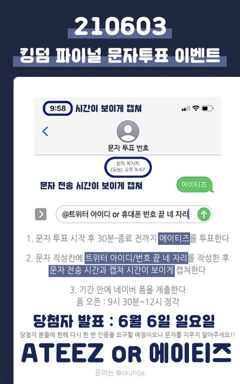 •6월 3일 당일 생방송 투표 시간 ☆에이티즈☆ 문자 한 통 전송(정보이용료 100원) 하고 선물 받아가세요❗