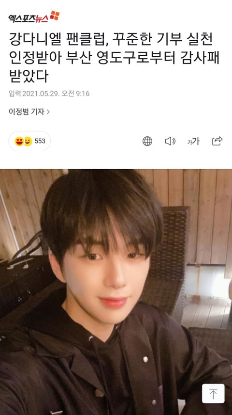강다니엘 팬클럽,꾸준한 기부실천 인정받아 부산 영도구로 감사패