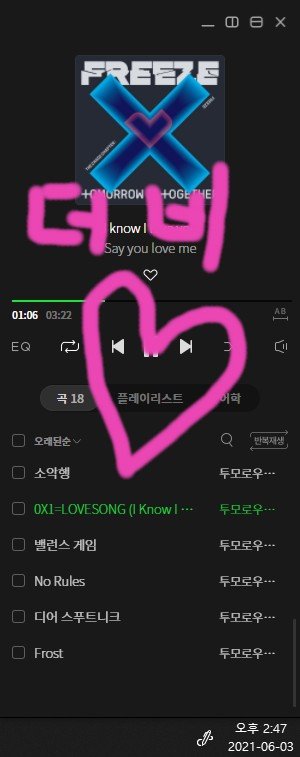 투바투 신곡 나왔대서 은혜갚으로 열심히 스밍중이에요