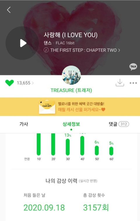 엄청 적은 수지만 트레저 타이틀 곡 스밍 인증합니다!! 트레저분들 노래 항상 잘 듣고 있어요~!!