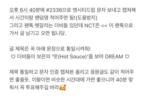 - 자꾸 글 썰리길래 메모장에 쓰고 캡쳐해옴 ㅠㅠ 제목은 이거 복붙해서 통일시켜줘! ❤️ 더비들이 보은의 ‘맛(Hot Sauce)’을 보여 DREAM ❤️