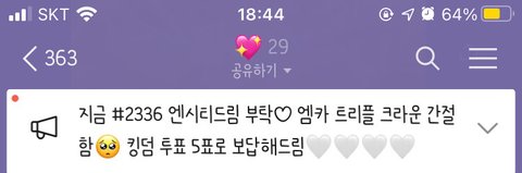 공지 올리니깐 바로 7명이 투표 인증한거 보내줌 나 킹덤투표 누구하지