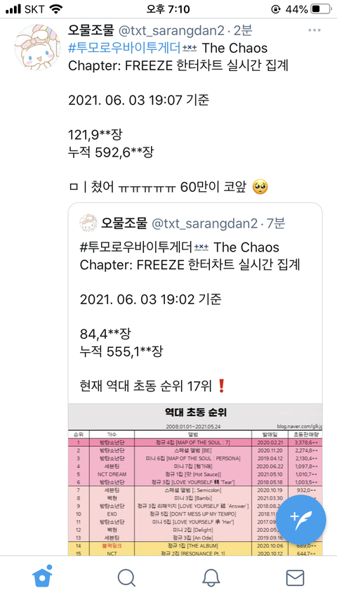 ㅠㅠㅠㅠㅠ육십만 얼마 안 남았대!!!!